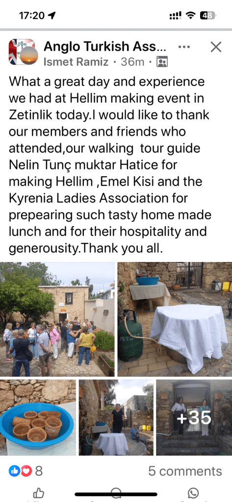 The event included the experiencing Hellim making, and a walk around the picturesque village of Zeytinlik with an English-speaking tour guide. A traditional lunch followed the walk. See our facebook page for more photos