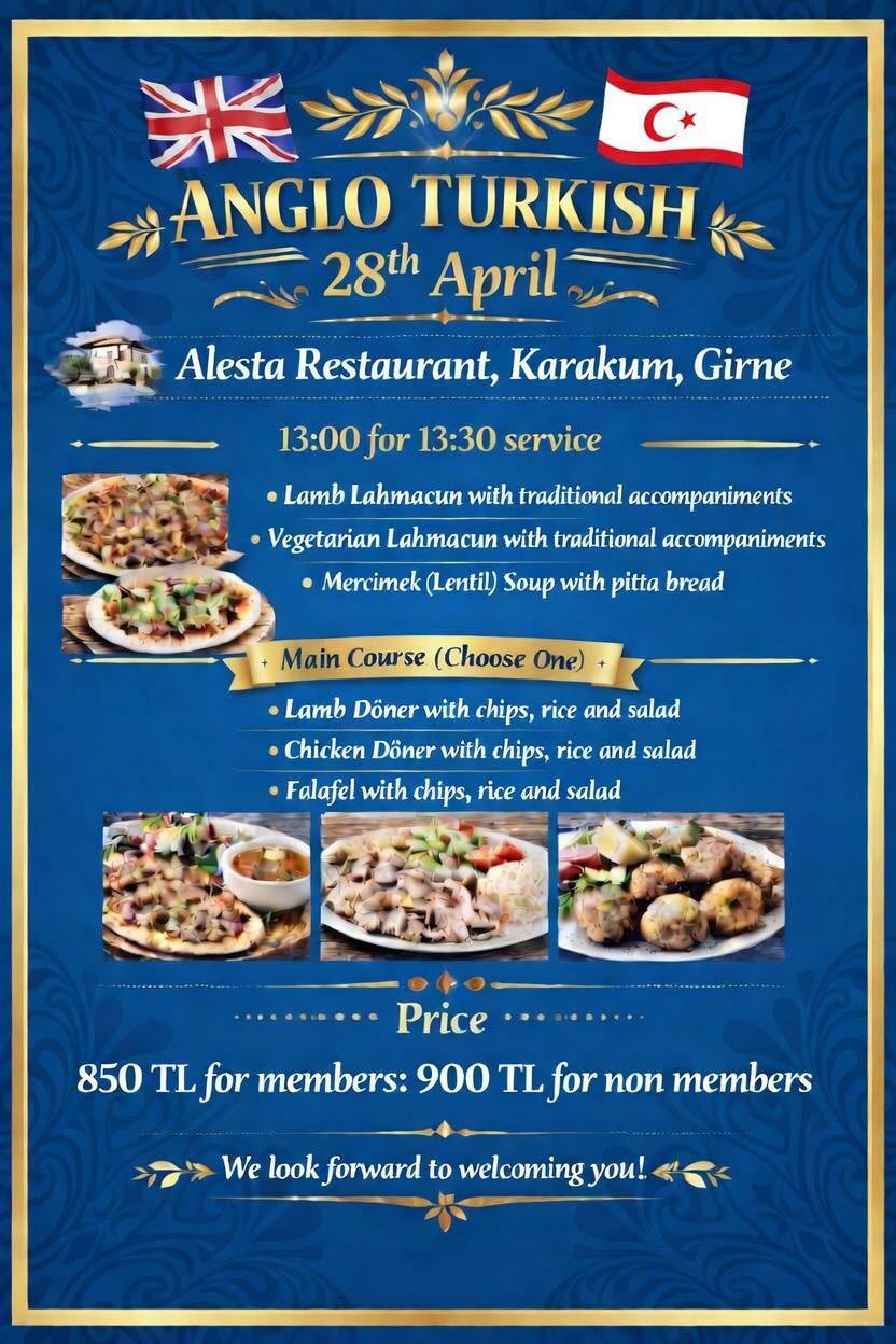 When booking please include your phone number, the names of all people booking and whether they are members or not. The cut off date for the event is the 25th April. If you cancel after this date you will libel to pay. Payment is in cash only, in Turkish Lira. Drinks must be paid for to the restaurant when ordering.