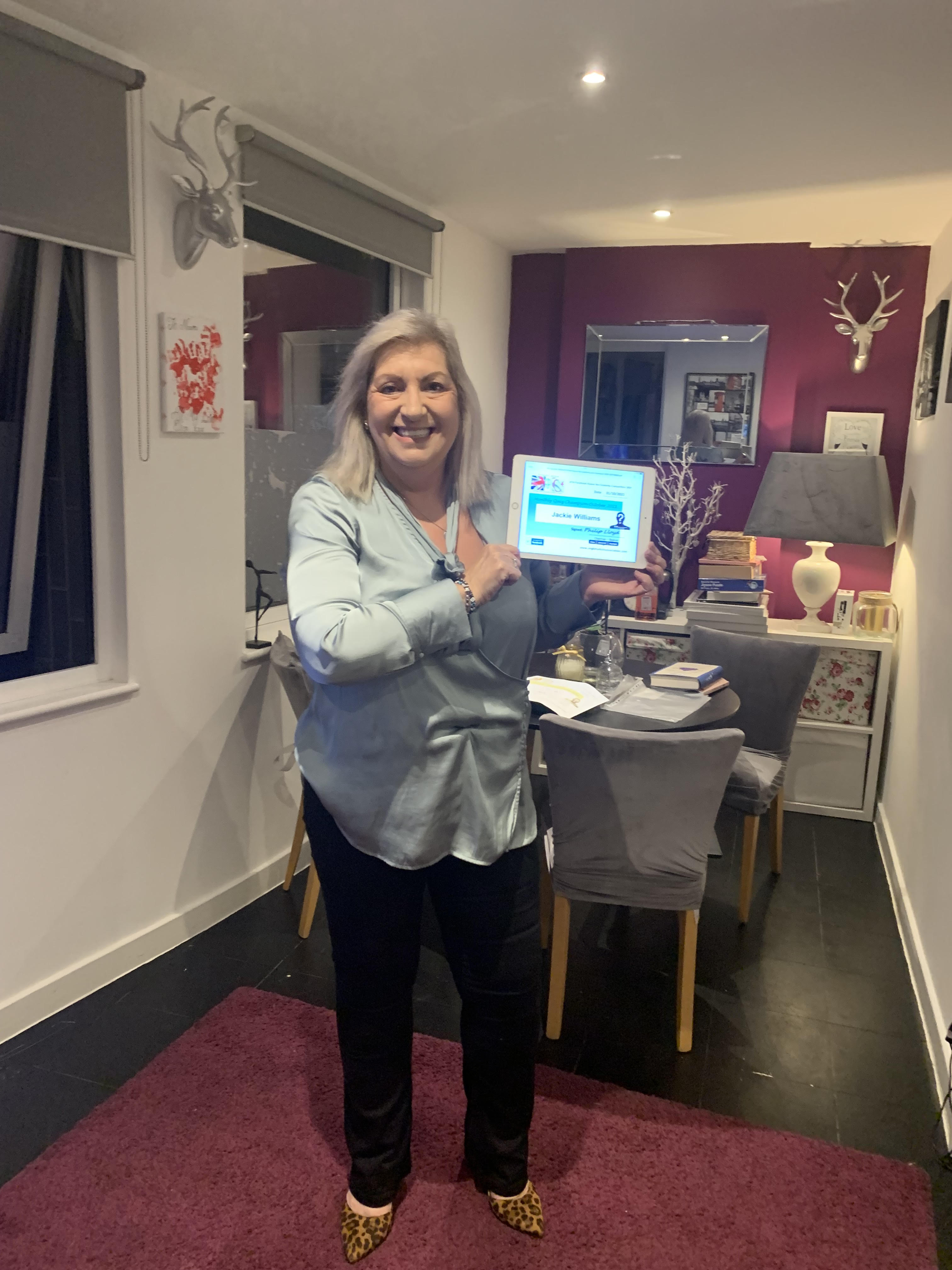 OCTOBER 2021 Monthly prize winner (person with the most correct guesses during the month) is: – Jackie Williams seen here in the UK with her winner’s certificate