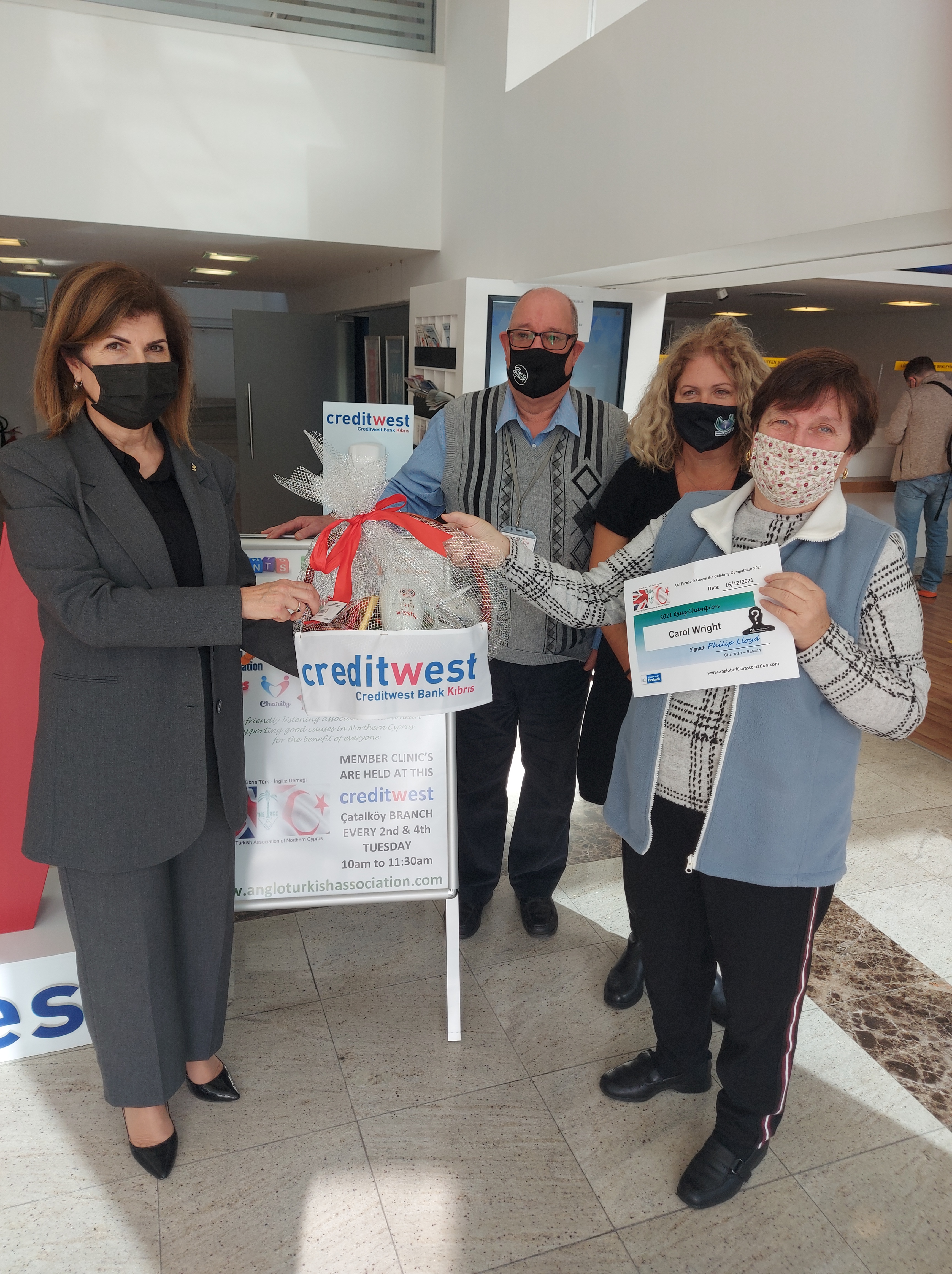 DECEMBER 2021 Overall Year End prize winner (person with the most correct guesses during the year) is: – Carol Wright seen here receiving her prize and certificate from Figen Kaymack of the competition sponsors Creditwest Bank along with the association chairman and Joanne Hickey (also of Creditwest Bank)