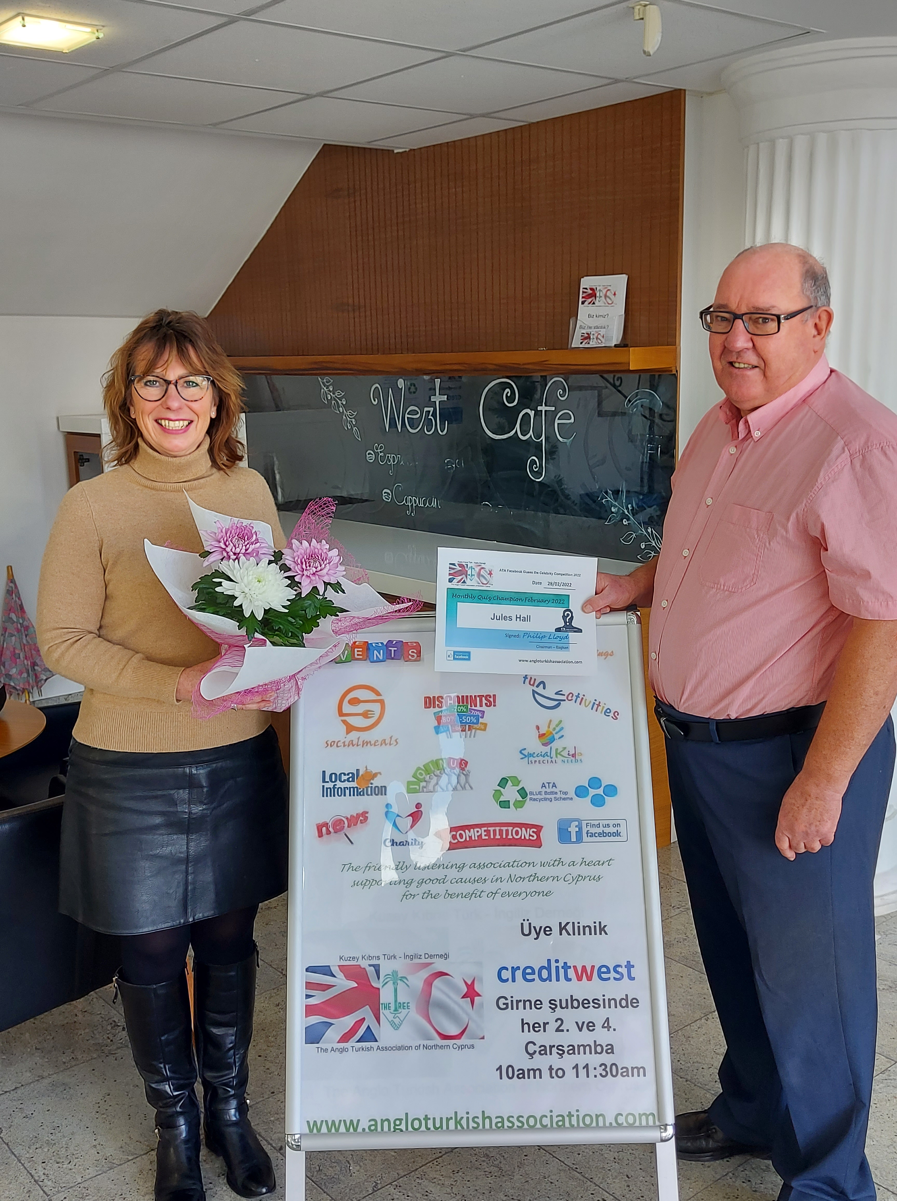 FEBRUARY 2022 Monthly prize winner (person with the most correct guesses during the month) is: – Jules Hall seen here receiving her prize and certificate from the association chairman