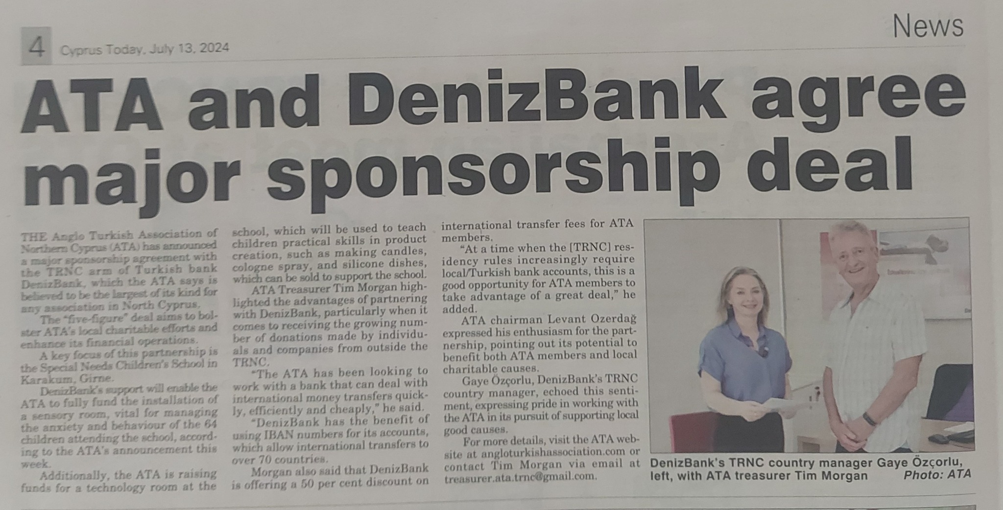 Gaye Ozҫorlu (DenizBank’s TRNC Country Manager) &Tim Morgan (ATA Treasurer) agreeing a very big discount for ATA members off Foreign Exchange charges on International monetary transactions as part of the bank’s sponsorship agreement. See the ATA website for more details.