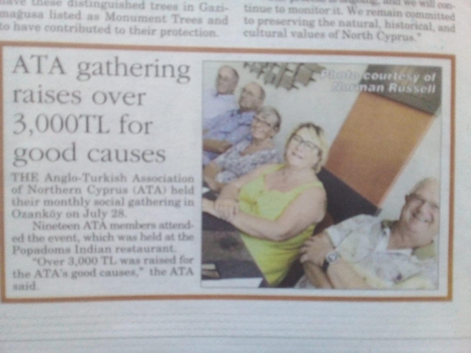 The Anglo Turkish Association (ATA) of Northern Cyprus organizes various social events and trips to raise funds for and to support , many good causes locally mainly involving schools and disadvantaged children.